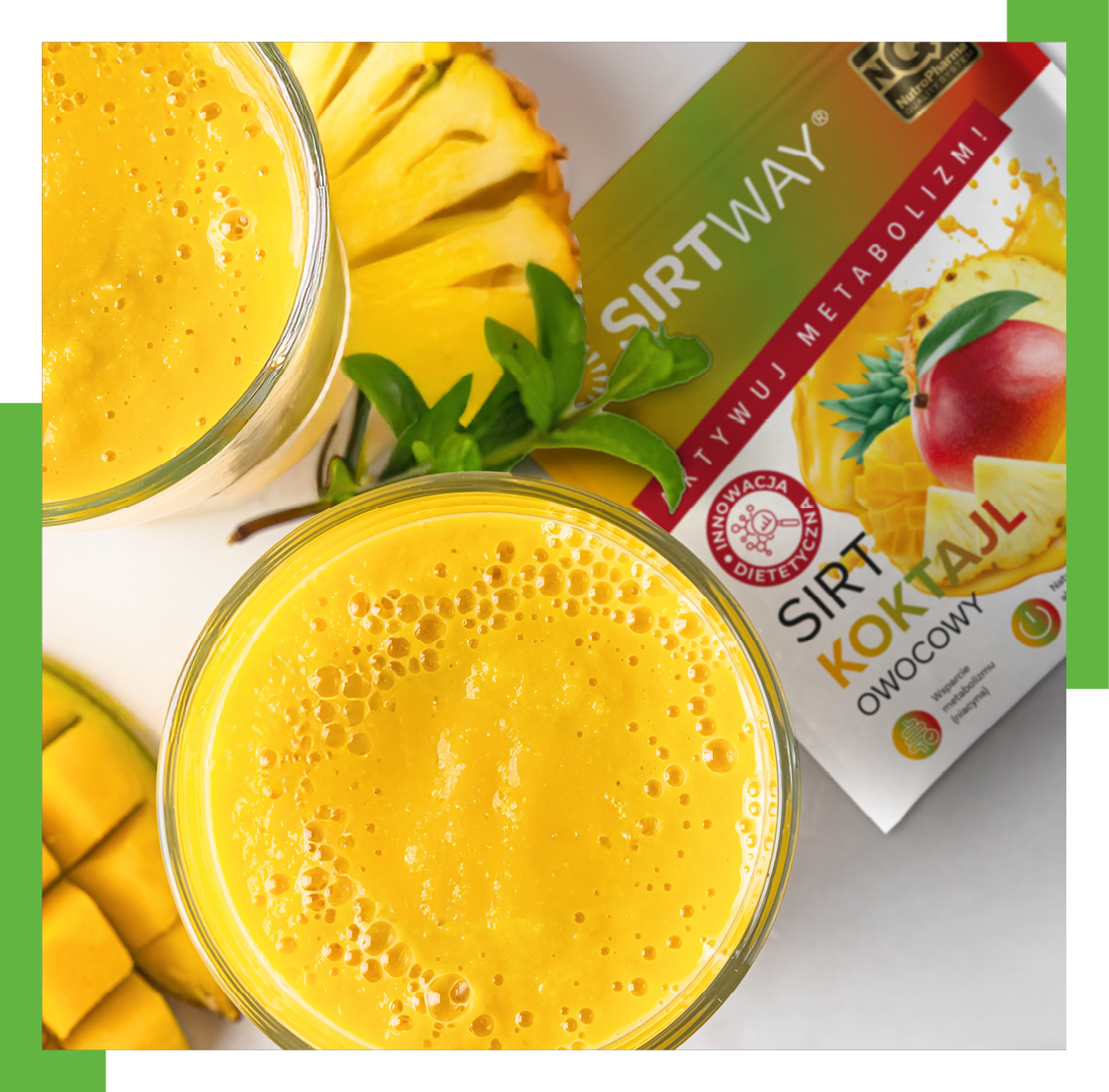 Dodatkowo, koktajle SirtWay zawierają naturalne, odpowiednio dobrane składniki (w patentowanej formie mikropeletek) jako aktywatory sirtuin dla odpowiedniego tempa metabolizmu i redukcji tkanki tłuszczowej.