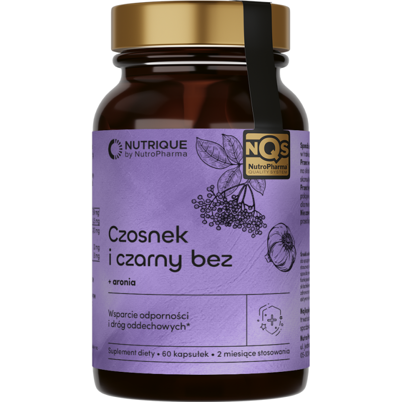 Składniki: zatężony ekstrakt z czosnku (Allium L.) standaryzowany na S-allilo-cysteinę (SAC), zatężone ekstrakty z owoców bzu czarnego (Sambucus nigra L.) i aronii (Aroniamelanocarpa) standaryzowane na polifenole i antocyjany, substancja glazurująca: hydroksypropylometyloceluloza; mączka ryżowa, substancja przeciwzbrylająca: sole magnezowe kwasów tłuszczowych.